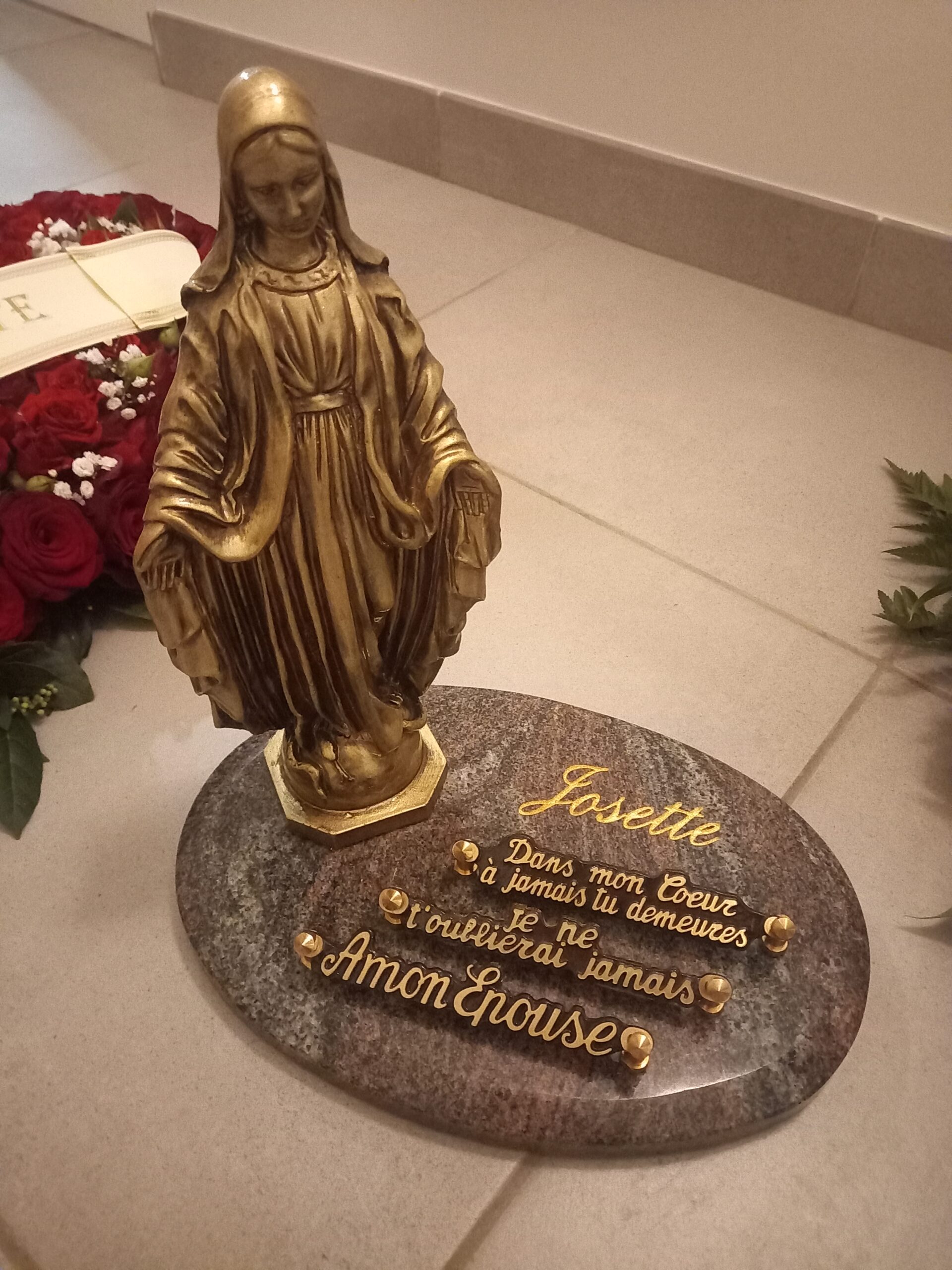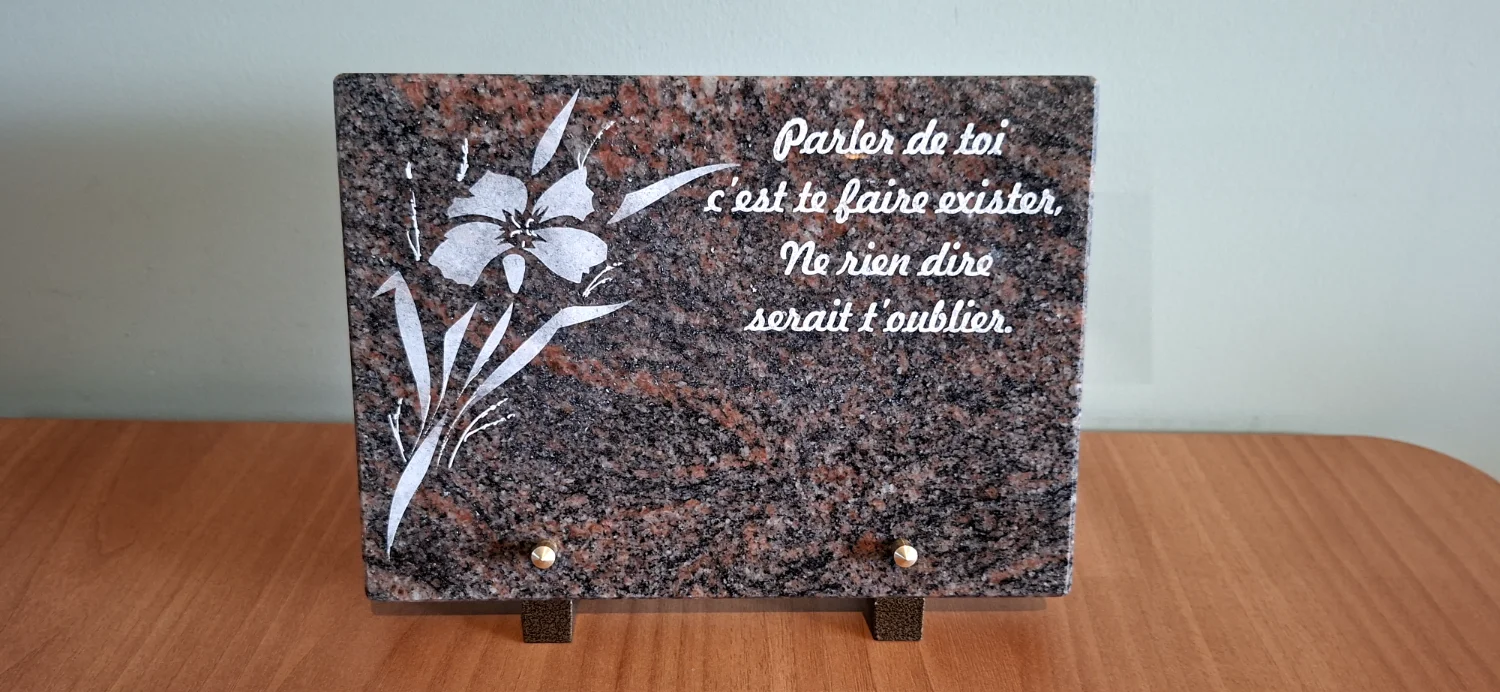 Les pompes funèbres marbrerie RENÉ F. MARCEL mettent à votre disposition leur savoir-faire artisanal pour la personnalisation de vos articles funéraires à Châtellerault. Nous vous proposons des gravures sur-mesure de différents styles et coloris.