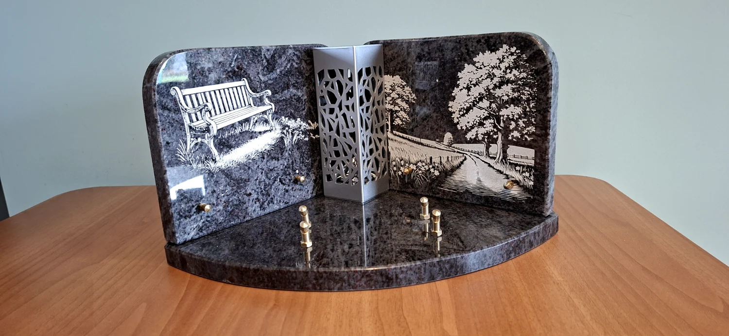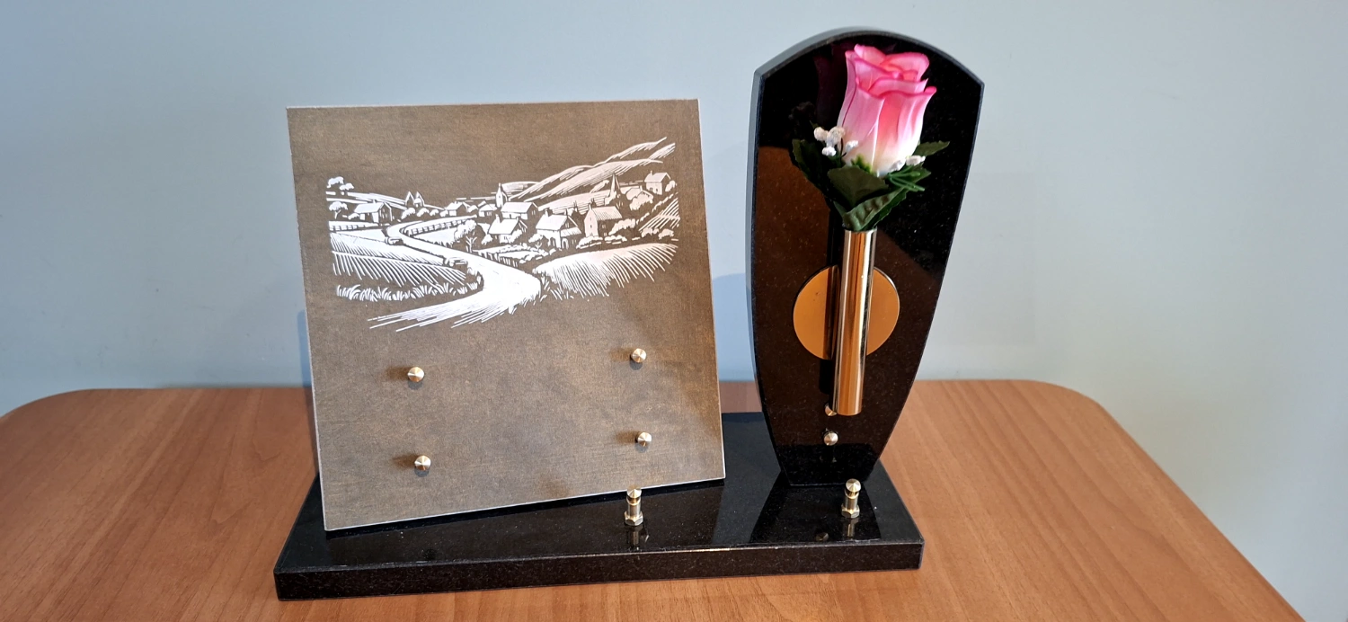 En plus de l’organisation d’obsèques, de la vente de monuments et de la conception de marbrerie funéraire, les pompes funèbres marbrerie RENÉ F. MARCEL vous proposent une large gamme d’articles funéraires. Pour des plaques, vases et urnes funéraires, différents matériaux, coloris, formes et tailles, vous sont proposés ainsi qu’un service de personnalisation selon vos envies ou les dernières volontés du défunt. Nos conseillers sauront vous accompagner et vous conseiller dans vos choix, retrouvez également un simulateur de gravure et personnalisation d’un momument funéraire.